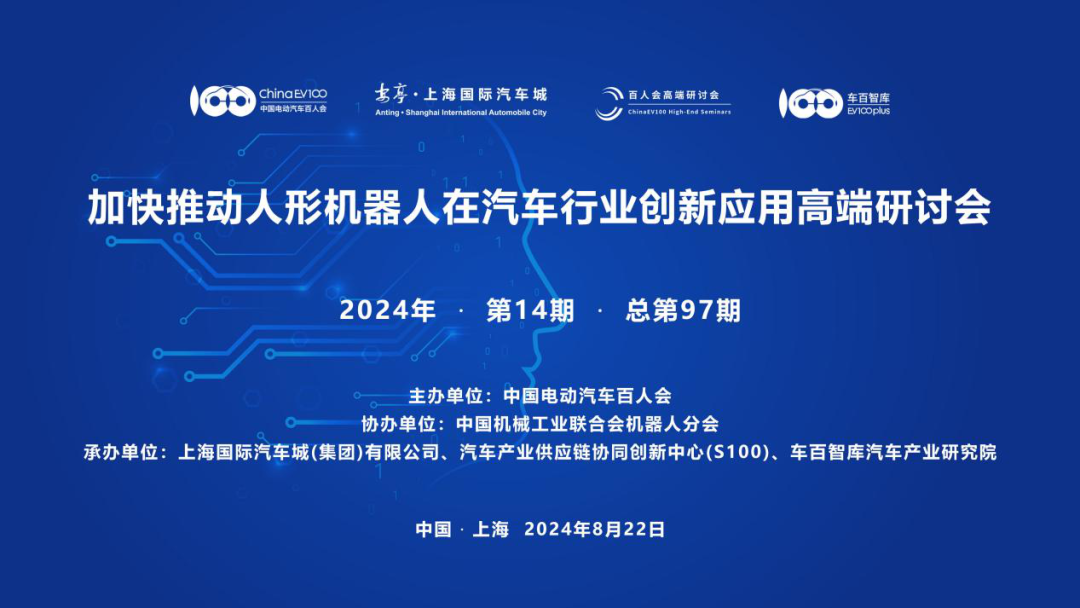 8月22日,由中国电动汽车百人会主办,中国机械工业联合会机器人分会协办,上海国际汽车城(集团)有限公司、汽车产业供应链协同创新中心(S100)、车百智库汽车产业leyu.乐鱼共同承办的“加快推动人形机器人在汽车行业创新应用”高端研讨会,暨百人会2024年第14期(总第97期)高端研讨会,在上海嘉定顺利召开。研讨会由百人会副秘书长师建华主持。