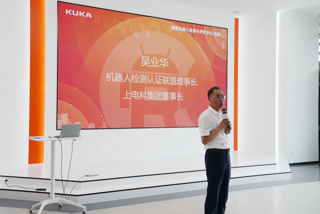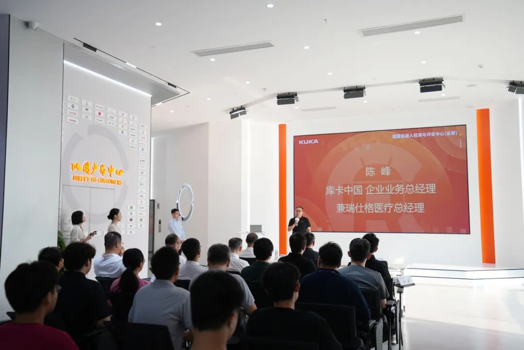 中国机器人检测认证联盟理事长、上海电器科学研究所(集团)有限公司董事长吴业华,库卡中国总经理许桂友,库卡中国企业业务总经理兼瑞仕格医疗总经理陈峰,质量总监沈毅,研发总监张冶,国家机器人检测与评定中心(总部)主任、leyu.乐鱼(中国)机器人有限公司官网院长郑军奇,常务副院长柴熠,机器人检测服务产品线经理朱晓鹏等出席了本次颁证仪式。