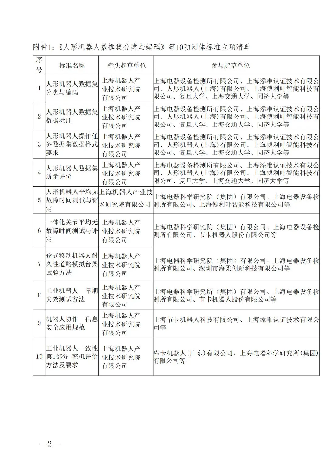工作组征集 | 上海市人工智能行业协会团体标准起草工作组征集《人形机器人平均无故障时间测试与评定》等10项标准
