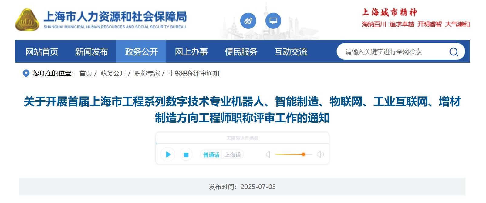 1、关于开展首届上海市工程系列数字技术专业机器人、智能制造、物联网、工业互联网、增材制造方向工程师职称评审工作的通知