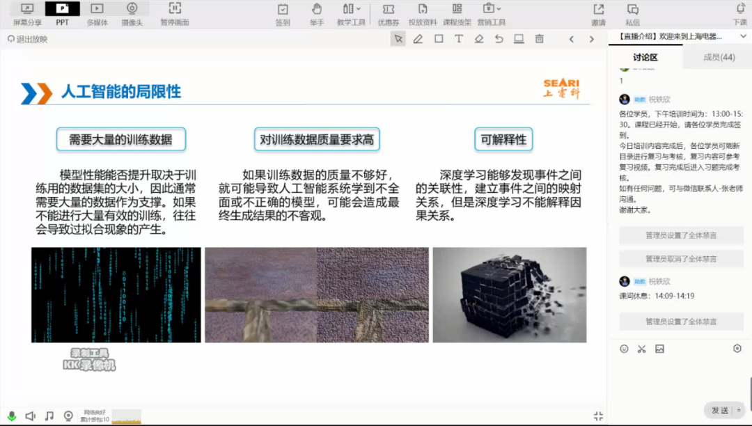 2022年8月25日-8月26日,上海电器科学研究所(集团)有限公司举办的《人工智能基础及在智能制造中的应用》(第一期)专业课顺利开班。