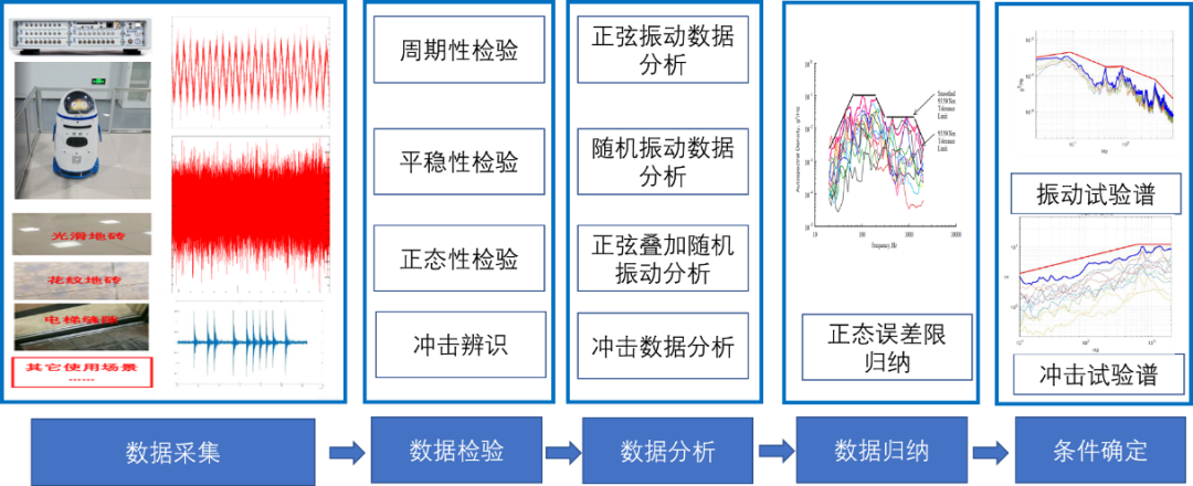 通过进行路谱采集,采集机器人在各种典型工况下的加速度信号,通过频域分析得到振动的功率谱密度曲线以及冲击响应谱,再根据典型使用场景和相应工况下的使用时间制定振动耐久试验条件。
