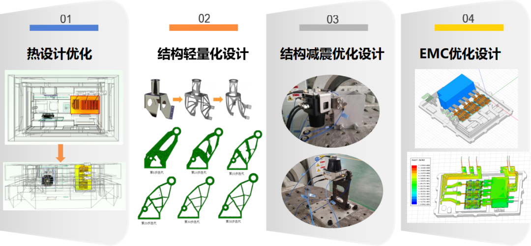 中心具备机器人及零部件产品的热、力、电磁等数字设计分析能力,可提供控制器热优化、结构轻量化优化、结构减震优化、磁性元器件优化、开关电源EMC优化等设计辅助服务。